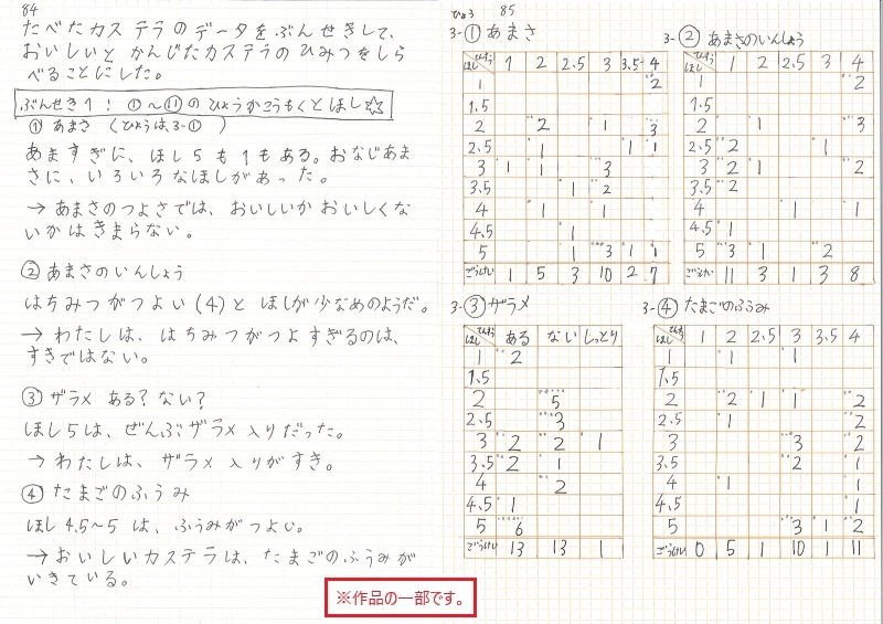 カステラを甘さ、焼き具合などの数値で表している点がわかりやすい。おいしいカステラも顕微鏡を使って断面を調べたり、条件制御しながら科学的に料理したりしていたことがすばらしいです。