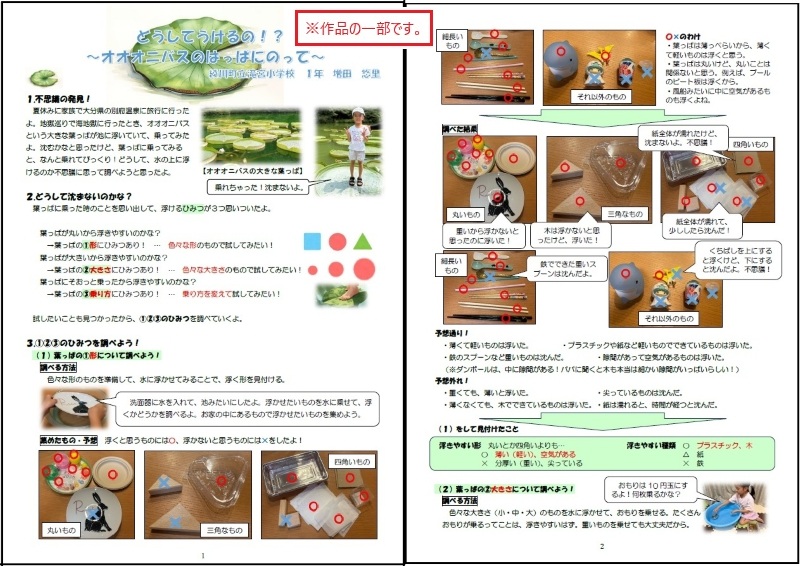 オオオニバスに乗った体験から生まれた疑問を解決しています。実験方法を考え、予想を立てて、結果を確かめるという手法がすばらしいです。